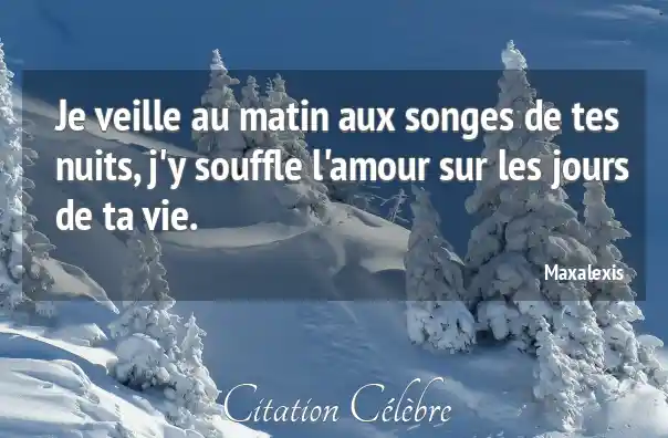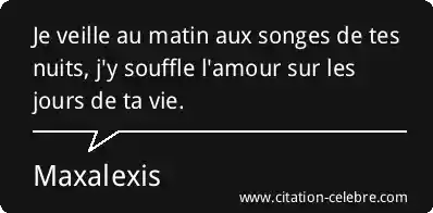 Je veille au matin aux songes de tes nuits, j'y souffle l'amour sur les jours de ta vie.