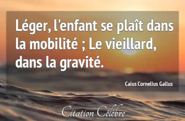 Léger, l'enfant se plaît dans la mobilité ; Le vieillard, dans la gravité.