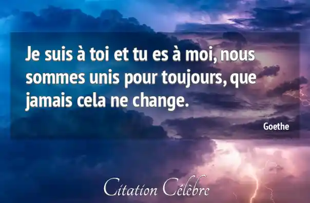 Je suis à toi et tu es à moi, nous sommes unis pour toujours, que jamais cela ne change.