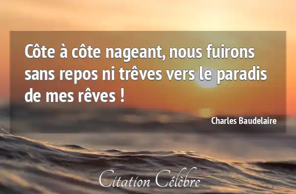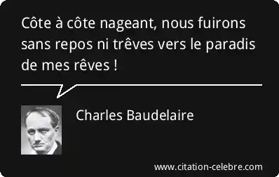 Côte à côte nageant, nous fuirons sans repos ni trêves vers le paradis de mes rêves !