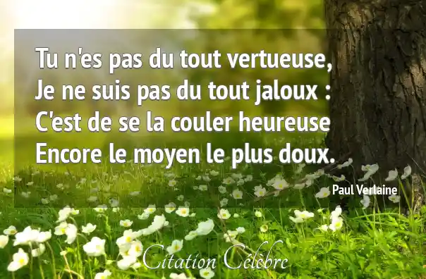 Tu n'es pas du tout vertueuse, Je ne suis pas du tout jaloux : C'est de se la couler heureuse Encore le moyen le plus doux.