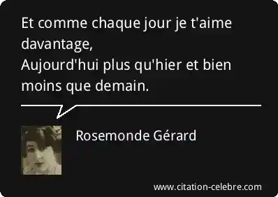 Et comme chaque jour je t'aime davantage,Aujourd'hui plus qu'hier et bien moins que demain.