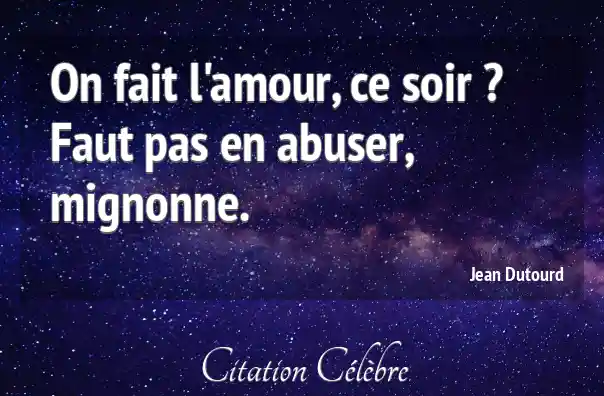 On fait l'amour, ce soir ? Faut pas en abuser, mignonne.