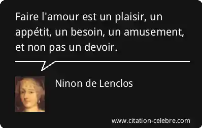 Faire l'amour est un plaisir, un appétit, un besoin, un amusement, et non pas un devoir.