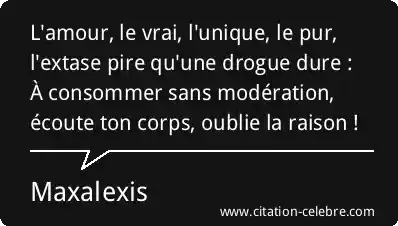 L'amour, le vrai, l'unique, le pur, l'extase pire qu'une drogue dure : À consommer sans modération, écoute ton corps, oublie la raison !