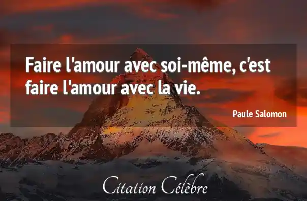 Faire l'amour avec soi-même, c'est faire l'amour avec la vie.
