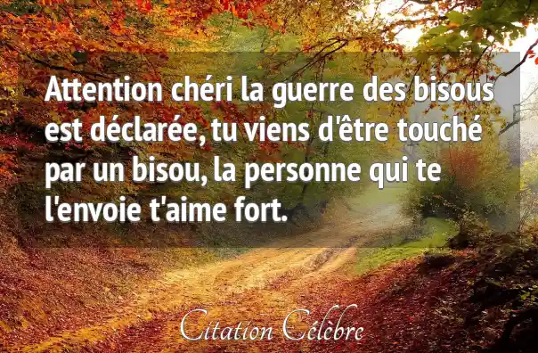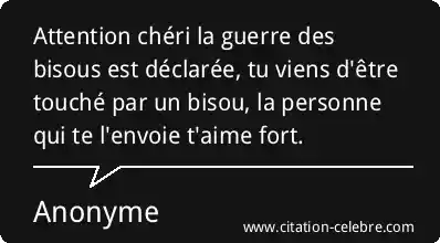 Attention chéri la guerre des bisous est déclarée, tu viens d'être touché par un bisou, la personne qui te l'envoie t'aime fort.
