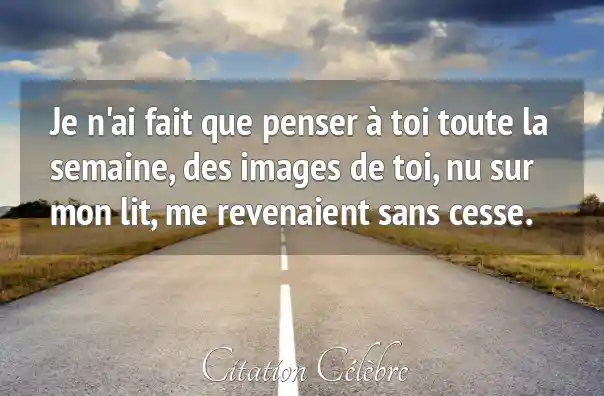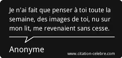 Je n'ai fait que penser à toi toute la semaine, des images de toi, nu sur mon lit, me revenaient sans cesse.
