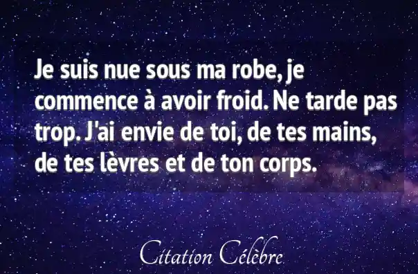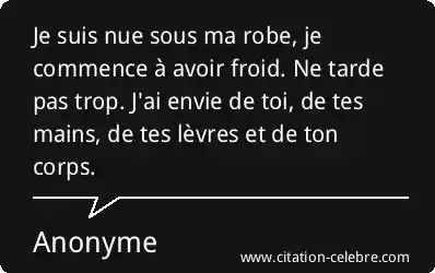 Je suis nue sous ma robe, je commence à avoir froid. Ne tarde pas trop. J'ai envie de toi, de tes mains, de tes lèvres et de ton corps.