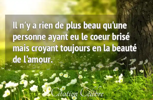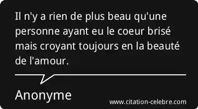 Il n'y a rien de plus beau qu'une personne ayant eu le coeur brisé mais croyant toujours en la beauté de l'amour.