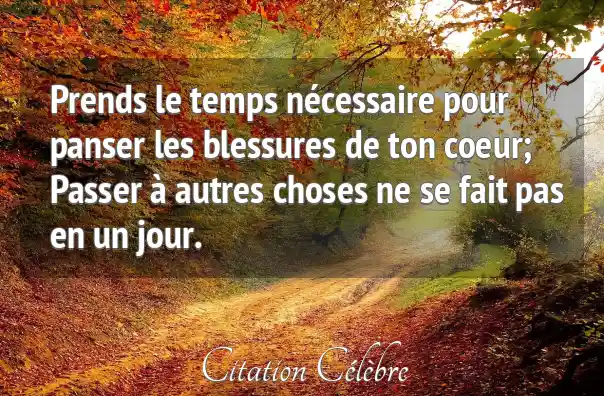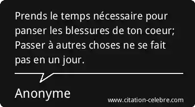 Prends le temps nécessaire pour panser les blessures de ton coeur; Passer à autres choses ne se fait pas en un jour.