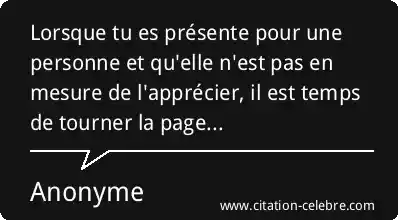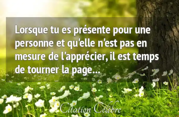 Lorsque tu es présente pour une personne et qu'elle n'est pas en mesure de l'apprécier, il est temps de tourner la page...