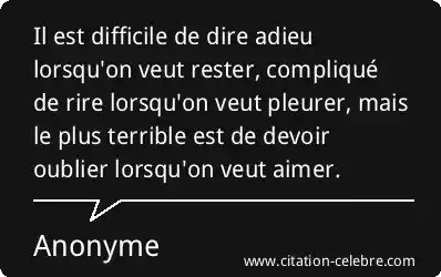 Cette formule, bien que largement diffusée et parfois attribuée à tort à des auteurs célèbres comme Victor Hugo, semble être une citation apocryphe ou anonyme. Elle a probablement émergé de manière populaire, circulant sur les réseaux sociaux et dans les recueils de citations contemporains, ce qui explique sa résonance directe avec les émotions modernes. Son style est accessible et percutant, typique des maximes qui rencontrent un succès viral.