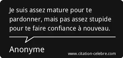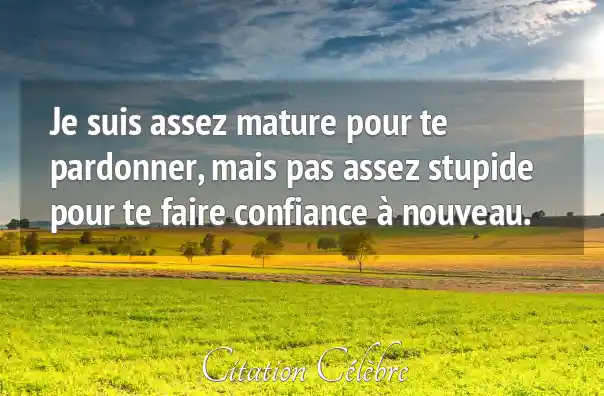 Je suis assez mature pour te pardonner, mais pas assez stupide pour te faire confiance à nouveau.