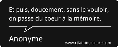 Et puis, doucement, sans le vouloir, on passe du coeur à la mémoire.