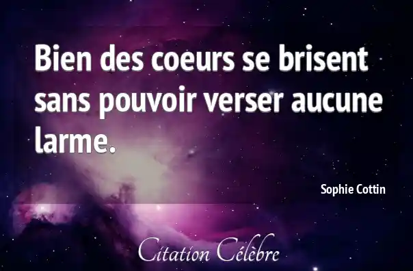 Bien des coeurs se brisent sans pouvoir verser aucune larme.