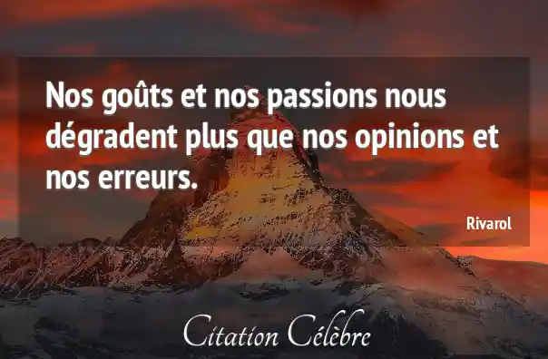 Nos goûts et nos passions nous dégradent plus que nos opinions et nos erreurs.