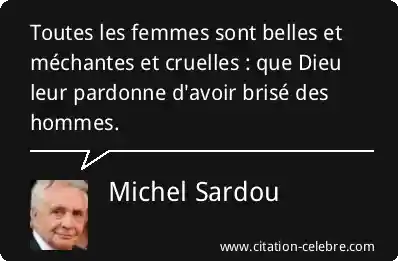 Toutes les femmes sont belles et méchantes et cruelles : que Dieu leur pardonne d'avoir brisé des hommes.