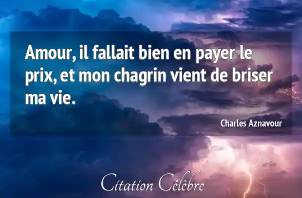Amour, il fallait bien en payer le prix, et mon chagrin vient de briser ma vie.