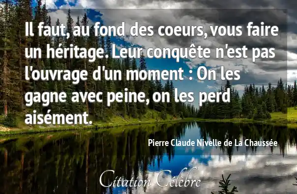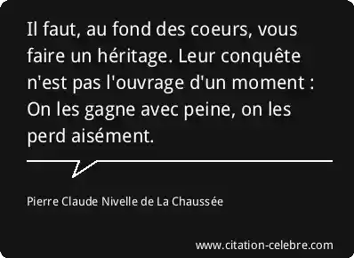 Il faut, au fond des coeurs, vous faire un héritage. Leur conquête n'est pas l'ouvrage d'un moment : On les gagne avec peine, on les perd aisément.