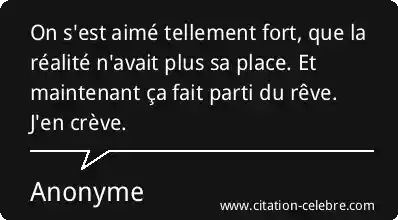 On s'est aimé tellement fort, que la réalité n'avait plus sa place. Et maintenant ça fait parti du rêve. J'en crève.