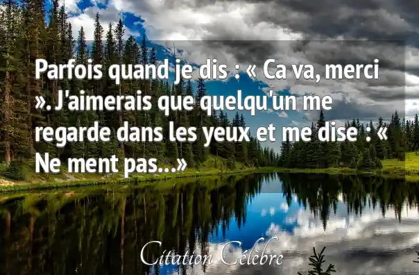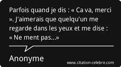 Parfois quand je dis : « Ca va, merci ». J'aimerais que quelqu'un me regarde dans les yeux et me dise : « Ne ment pas...»