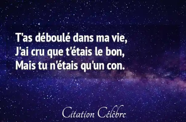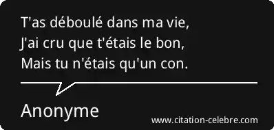 T'as déboulé dans ma vie,J'ai cru que t'étais le bon, Mais tu n'étais qu'un con.