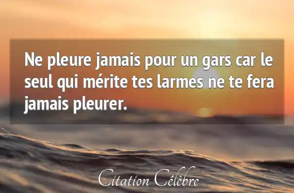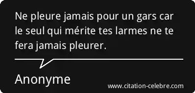 Ne pleure jamais pour un gars car le seul qui mérite tes larmes ne te fera jamais pleurer.