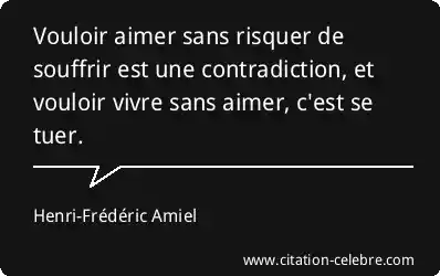 Vouloir aimer sans risquer de souffrir est une contradiction, et vouloir vivre sans aimer, c'est se tuer.