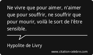 Ne vivre que pour aimer, n'aimer que pour souffrir, ne souffrir que pour mourir, voilà le sort de l'être sensible.