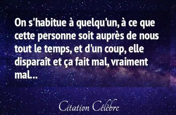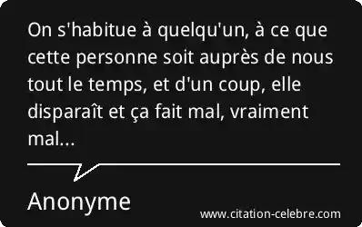 On s'habitue à quelqu'un, à ce que cette personne soit auprès de nous tout le temps, et d'un coup, elle disparaît et ça fait mal, vraiment mal...