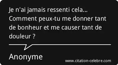 Je n'ai jamais ressenti cela... Comment peux-tu me donner tant de bonheur et me causer tant de douleur ?