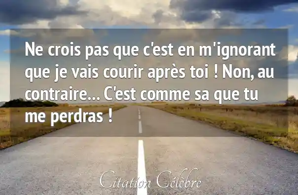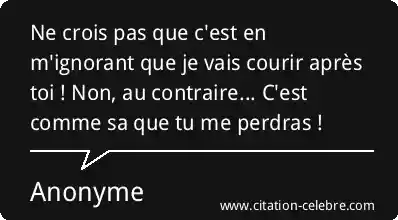 Ne crois pas que c'est en m'ignorant que je vais courir après toi ! Non, au contraire... C'est comme sa que tu me perdras !