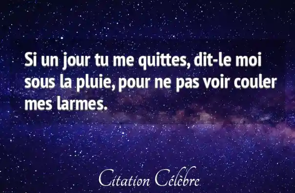 Si un jour tu me quittes, dit-le moi sous la pluie, pour ne pas voir couler mes larmes.