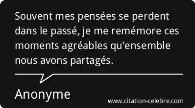 Souvent mes pensées se perdent dans le passé, je me remémore ces moments agréables qu'ensemble nous avons partagés.