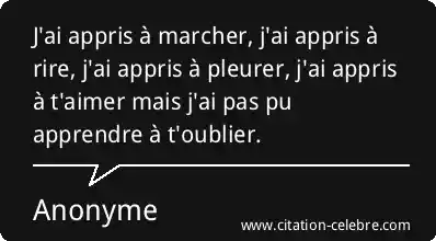 J'ai appris à marcher, j'ai appris à rire, j'ai appris à pleurer, j'ai appris à t'aimer mais j'ai pas pu apprendre à t'oublier.