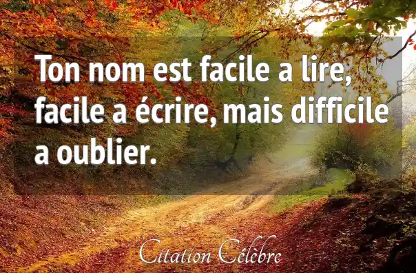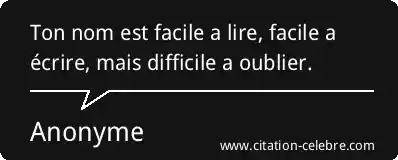 Ton nom est facile a lire, facile a écrire, mais difficile a oublier.