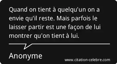 - Style : La citation utilise une structure simple et percutante basée sur une antithèse : "on a envie qu'il reste" opposé à "le laisser partir est une façon de lui montrer qu'on tient à lui". Cette construction met en évidence le paradoxe central, le rendant mémorable et philosophique.