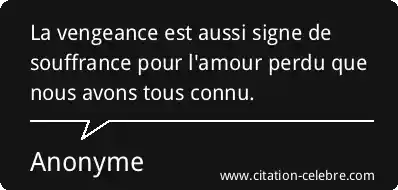La vengeance est aussi signe de souffrance pour l'amour perdu que nous avons tous connu.