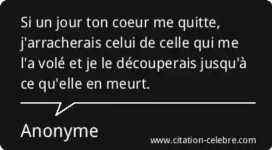 Si un jour ton coeur me quitte, j'arracherais celui de celle qui me l'a volé et je le découperais jusqu'à ce qu'elle en meurt.