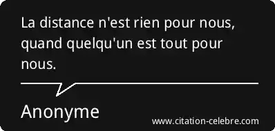 La distance n'est rien pour nous, quand quelqu'un est tout pour nous.