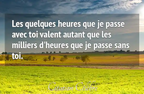 Les quelques heures que je passe avec toi valent autant que les milliers d'heures que je passe sans toi.