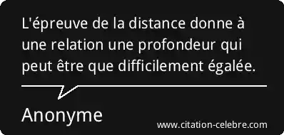 L'épreuve de la distance donne à une relation une profondeur qui peut être que difficilement égalée.