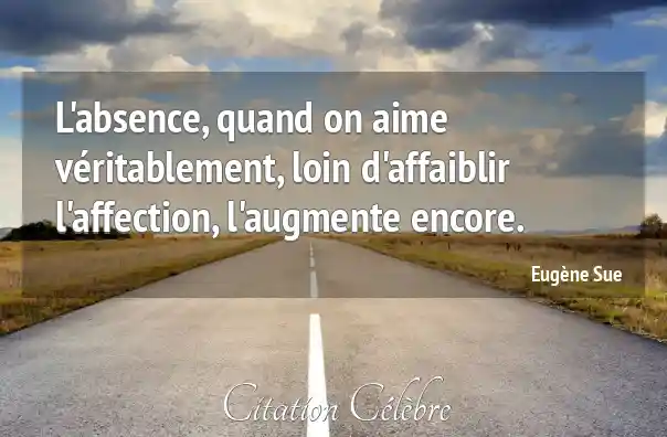 L'absence, quand on aime véritablement, loin d'affaiblir l'affection, l'augmente encore.