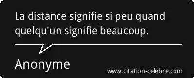 La distance signifie si peu quand quelqu'un signifie beaucoup.