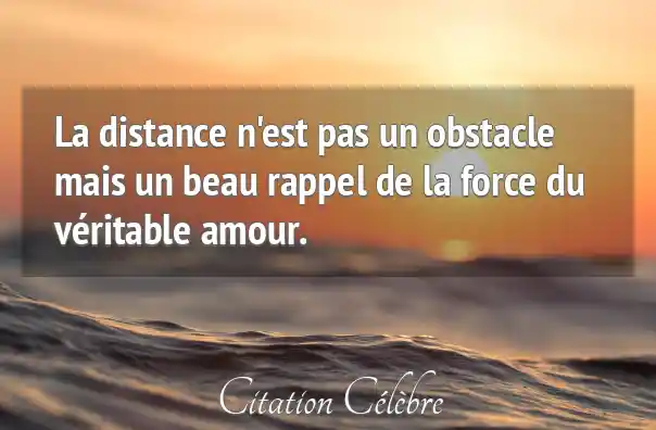 - Épreuves de la vie : Par extension, la "distance" peut symboliser toute difficulté (maladie, désaccord, périodes de doute) qui met à l'épreuve une relation. La citation rappelle que surmonter ces épreuves valide la force de l'amour.