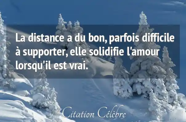 La distance a du bon, parfois difficile à supporter, elle solidifie l'amour lorsqu'il est vrai.