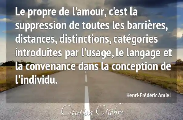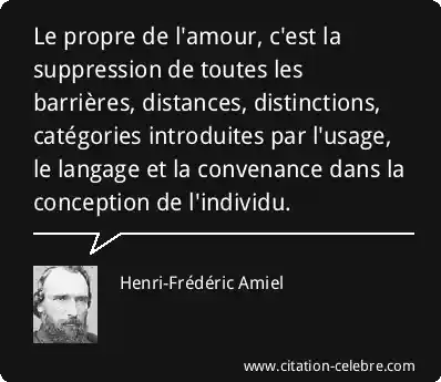 Le propre de l'amour, c'est la suppression de toutes les barrières, distances, distinctions, catégories introduites par l'usage, le langage et la convenance dans la conception de l'individu.