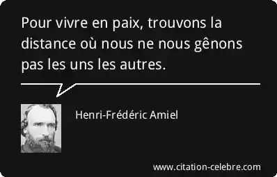 Pour vivre en paix, trouvons la distance où nous ne nous gênons pas les uns les autres.