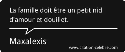 Citation Maxalexis amour : La famille doit être un petit nid d'amour et douillet....